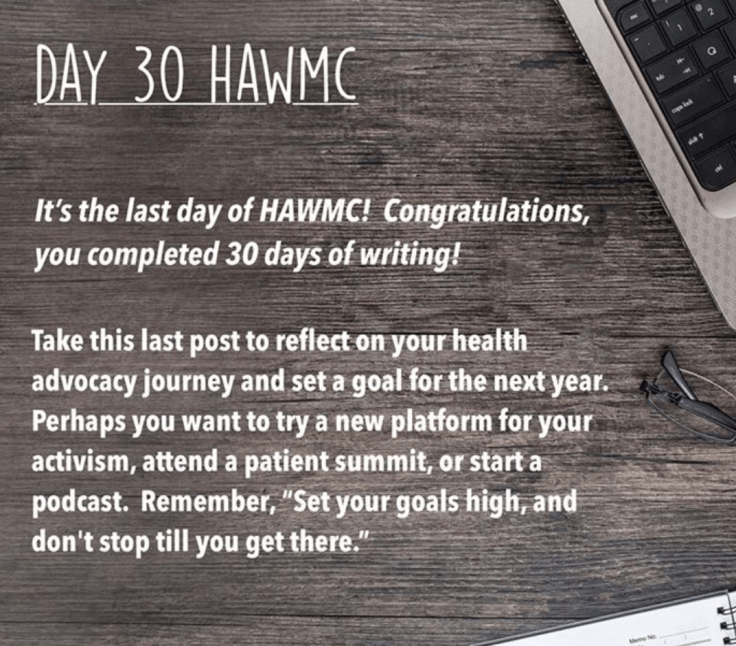 Day 30 Last day of WEGO Health Activist Writers Monthly Challenge #HAWMC