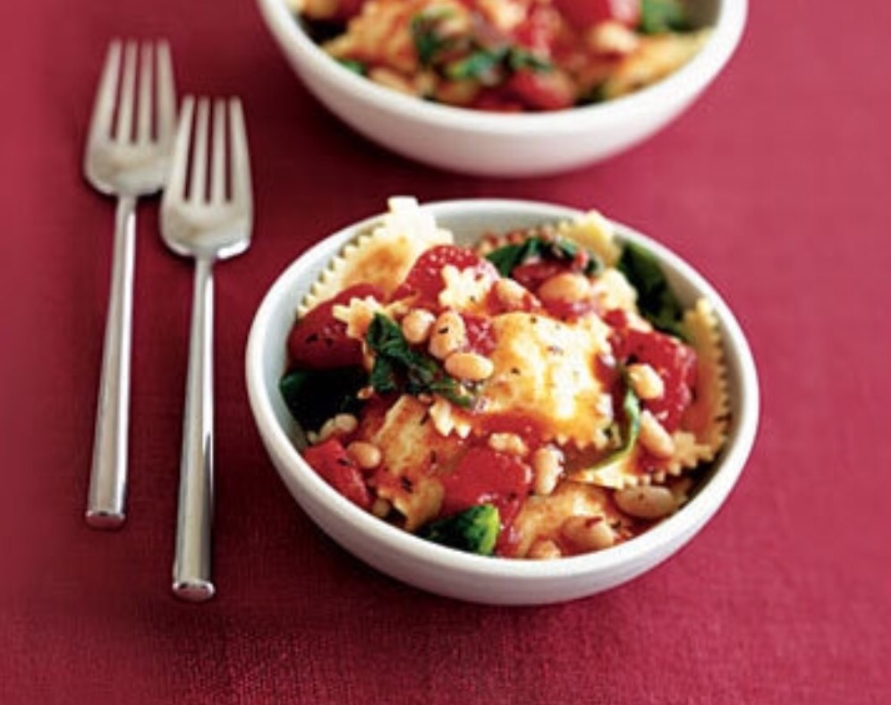 Try a whole wheat ravioli, which is a great source of fiber. Fiber, also found in white beans, will help you to feel full longer.