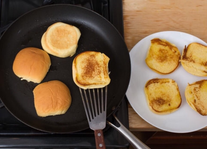 Toast the buns & plate your dish: