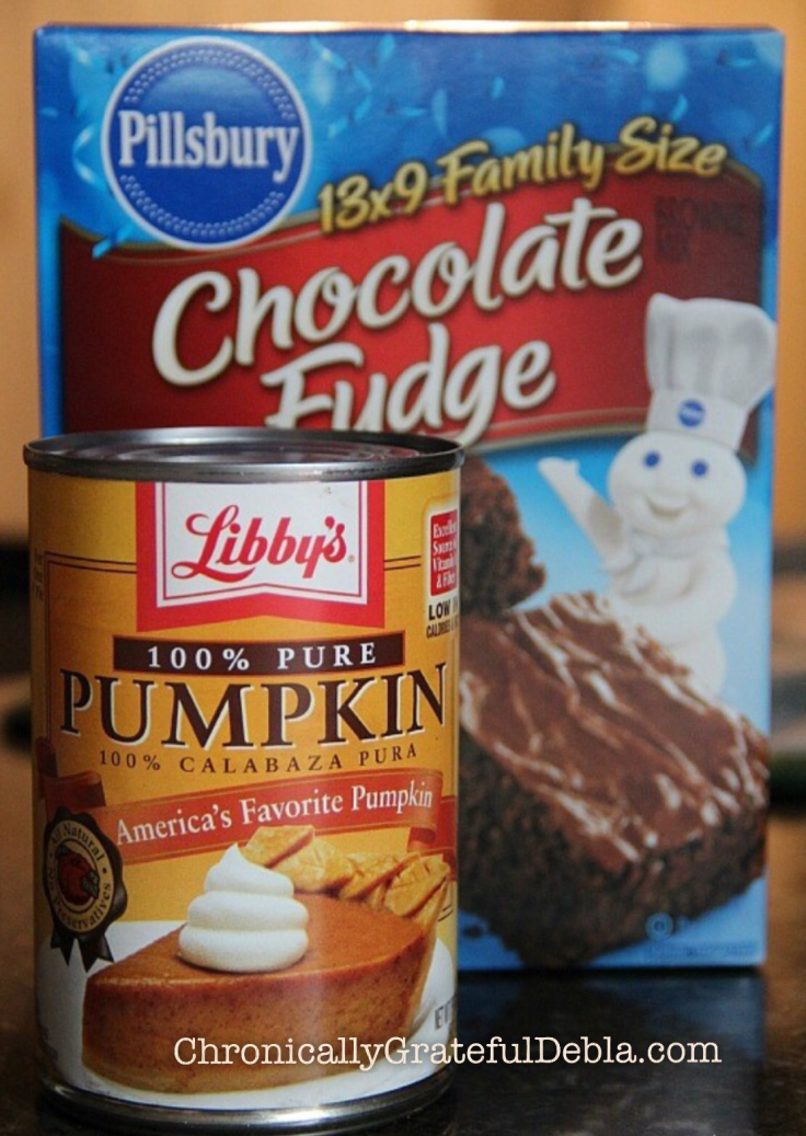 In a bowl mix together brownie mix and pumpkin until smooth.