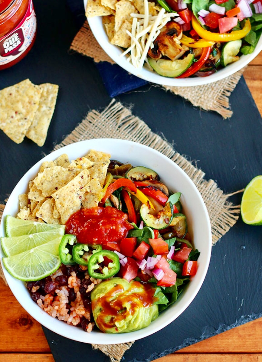 5. To serve: Scoop ¾ cup of rice and bean mixture into a bowl and add ½ of the grilled veggies.