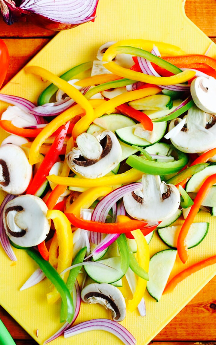 * ⅔ cup sliced bell peppers (red, green and yellow)