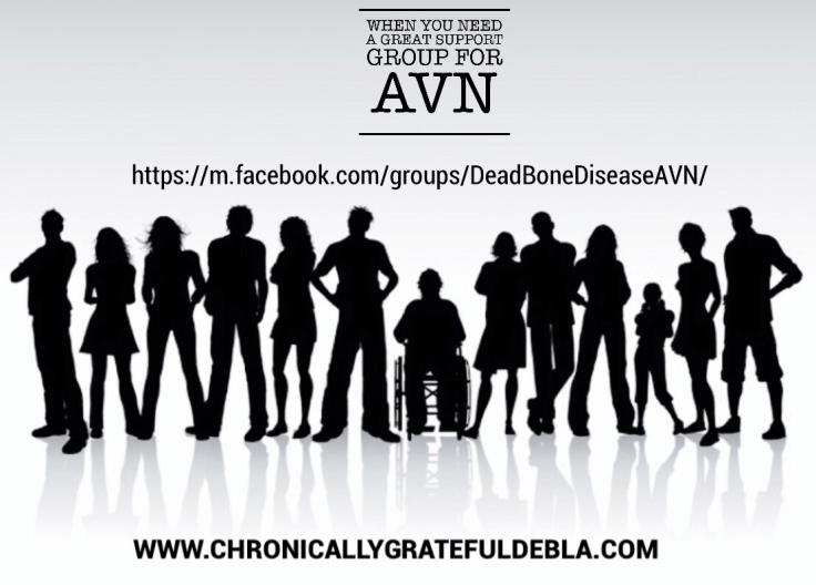 I hope you find a good support system. If you have Avascular Necrosis/Osteonecrosis your welcome to join my fb group.