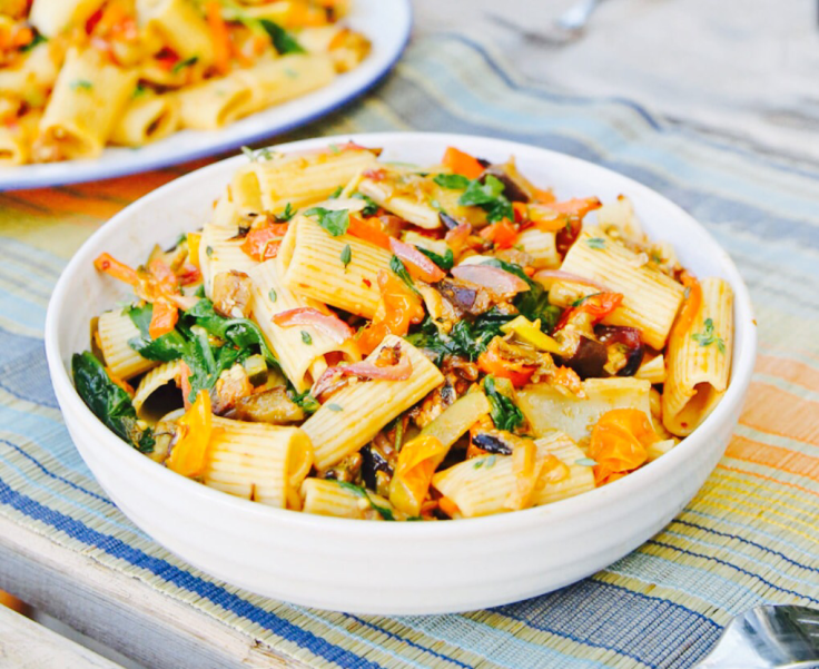 I have also made it with regular pasta and tons of roasted eggplant, zucchini , garlic but I'm going to stick with the quinoa pasta.