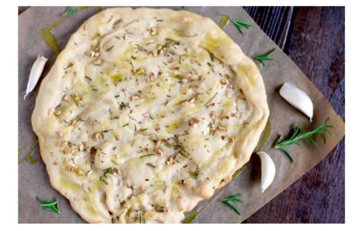 9. Place in oven on baking stone or on a baking sheet and bake for 15 minutes. Remove bread from oven, brush with olive oil, dried rosemary and coarse sea salt. Continue baking for an additional 5 minutes.