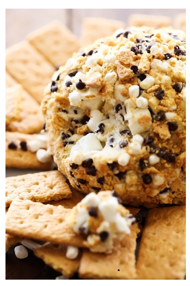 Marshmallows, chocolate and graham crackers combine to make one delicious sweet cheese ball. It is everything you love about s’mores wrapped up into on tasty dessert appetizer!