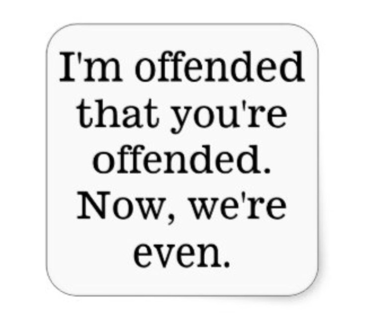 I should not have to start or end a statement with “no offense.” We all have the right to our own opinion and being offended does not make you right.