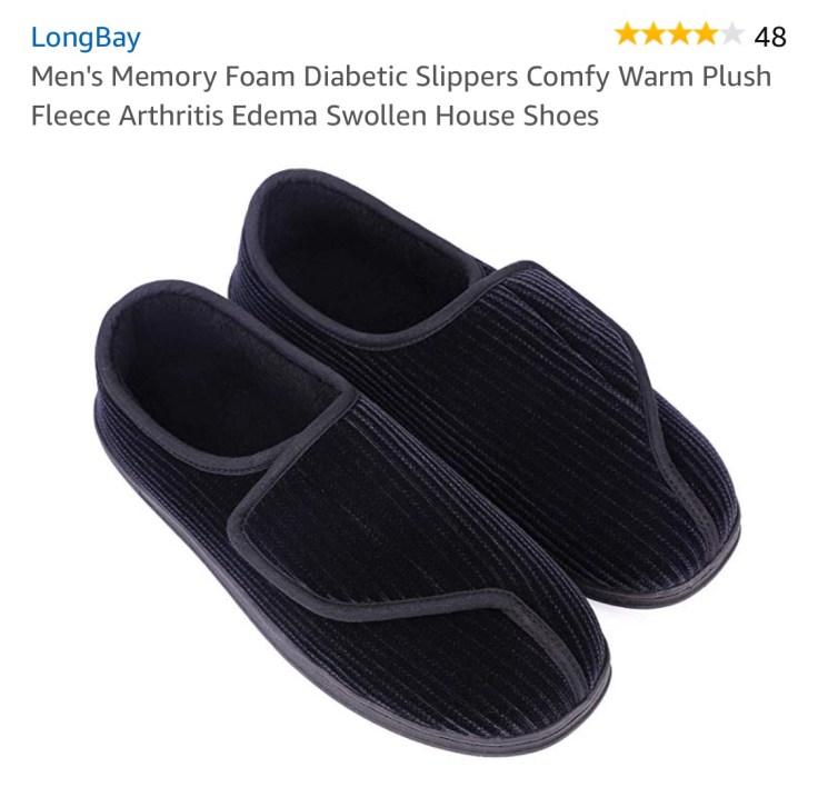 Men also suffer chronic pain these will keep feet cozy warm. Easy on . Best to add a size when buying so if he is a size 10 get 11.