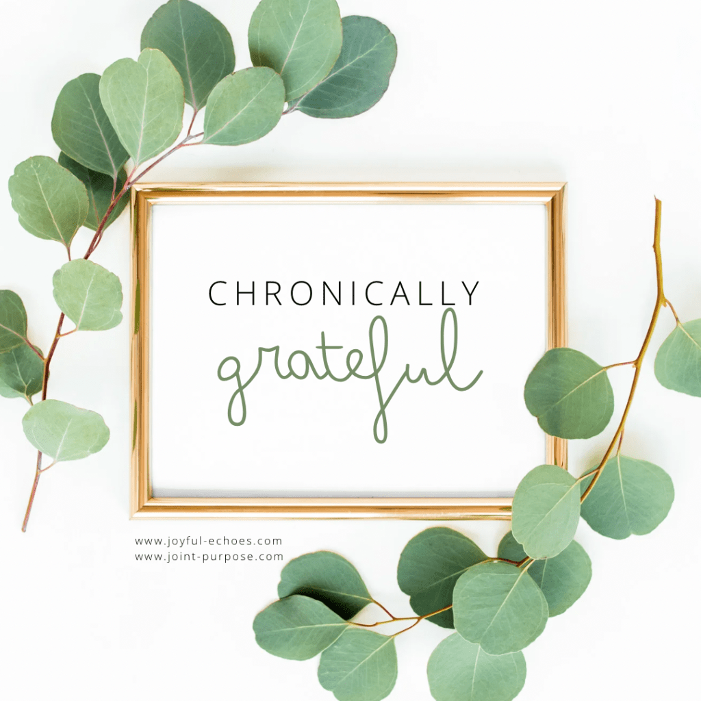 As the author of the blog “ChronicallyGratefulDebla,” aka now called http://www.Joint-Purpose.com and also http://www.joyful-echoes.com